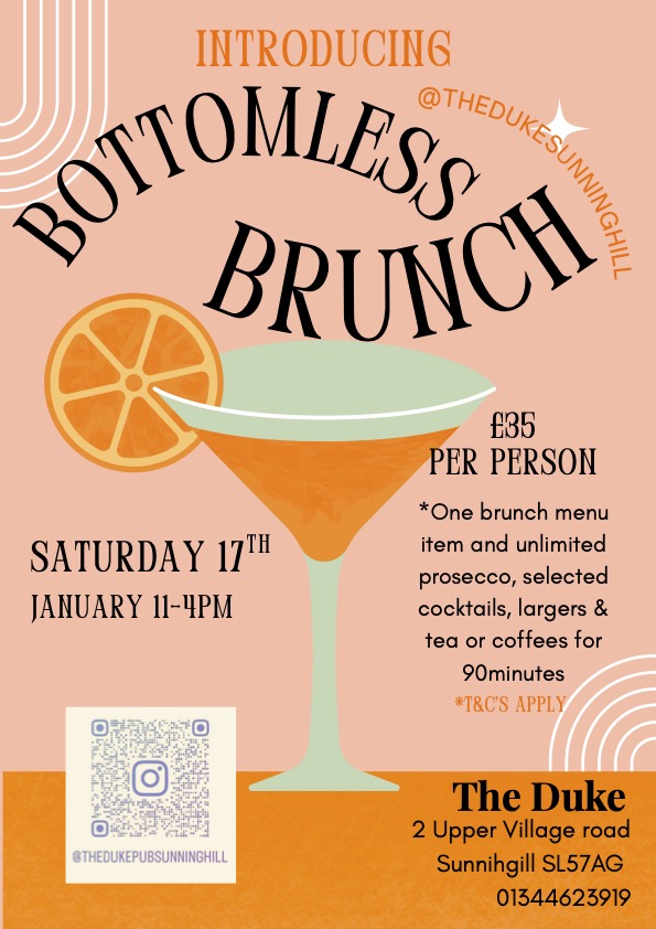 Why not join us for Bottomless Brunch every second Saturday between 11am – 4pm, at The Duke in Sunninghill.
