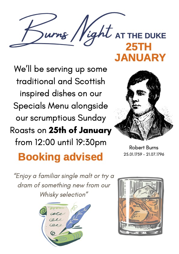 We’ll be serving up some traditional and Scottish inspired dishes on our specials Menu, alongside our scrumptious Sunday Roasts.