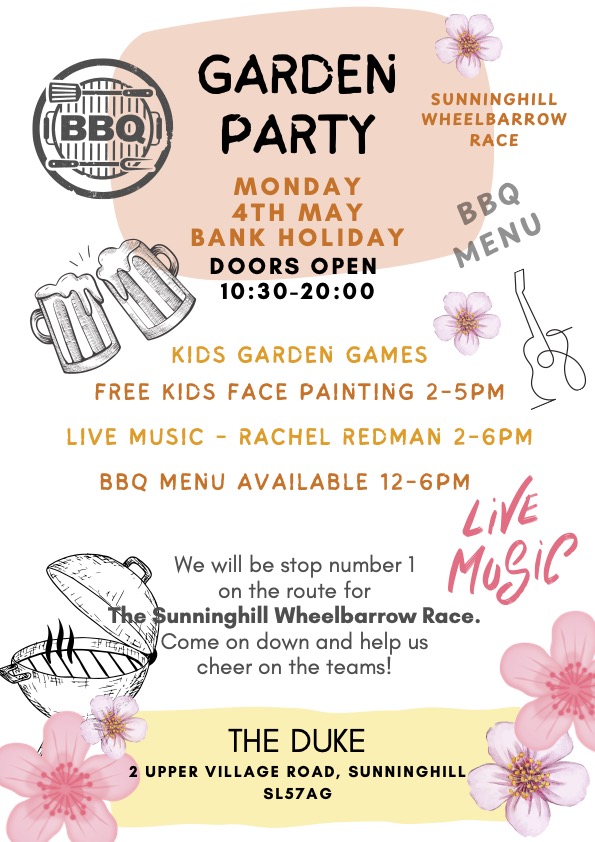 Kids Garden Games, Kids Face Painting, Live Music and BBQ.